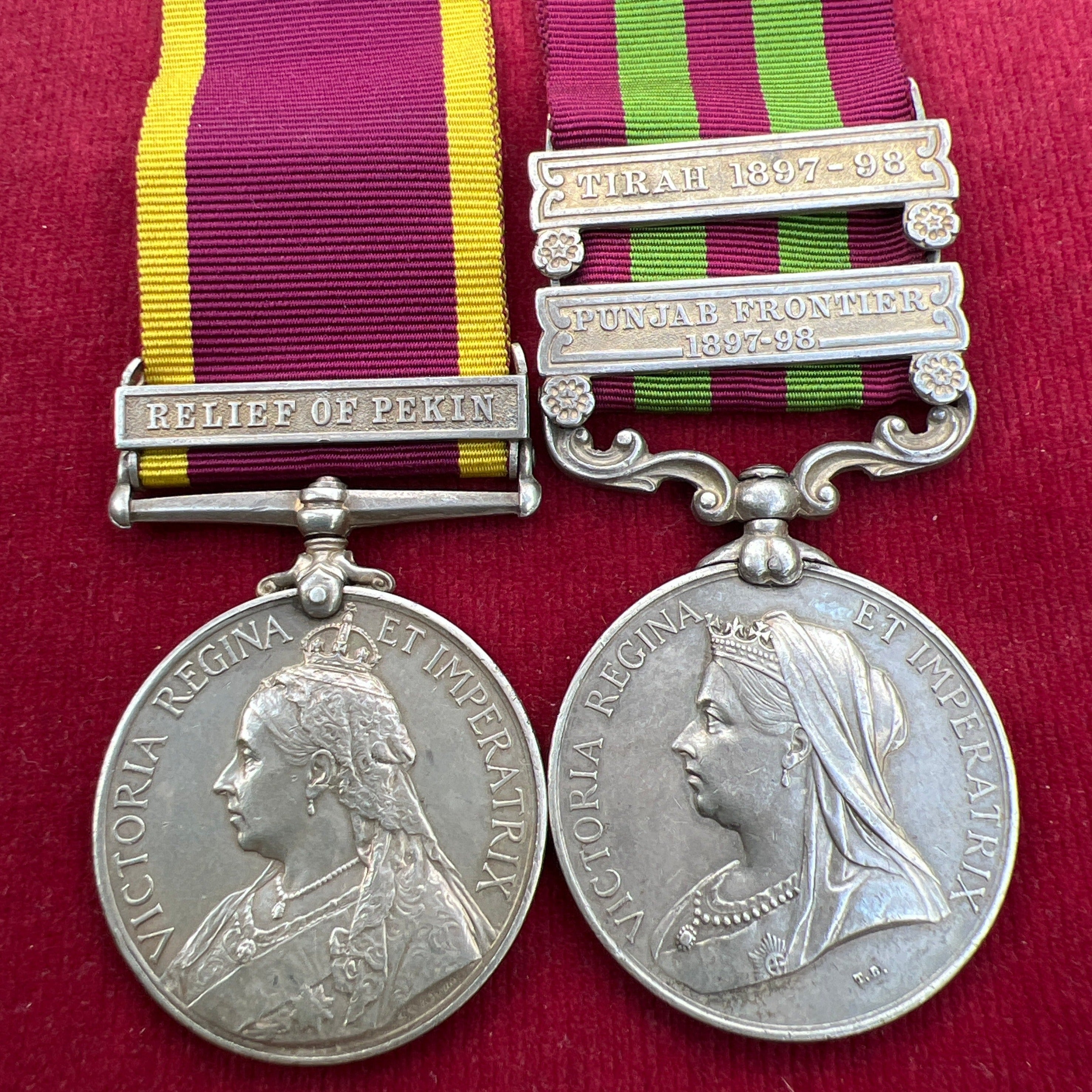 China War Medal 1900, 1 bar: Relief of Pekin/ India Medal, 2 bars: Tirah 1897-98 & Punjab Frontier 1897-98, pair, to 2015 Driver Masum Shah, Number 3 Company, Bombay Sappers & Miners