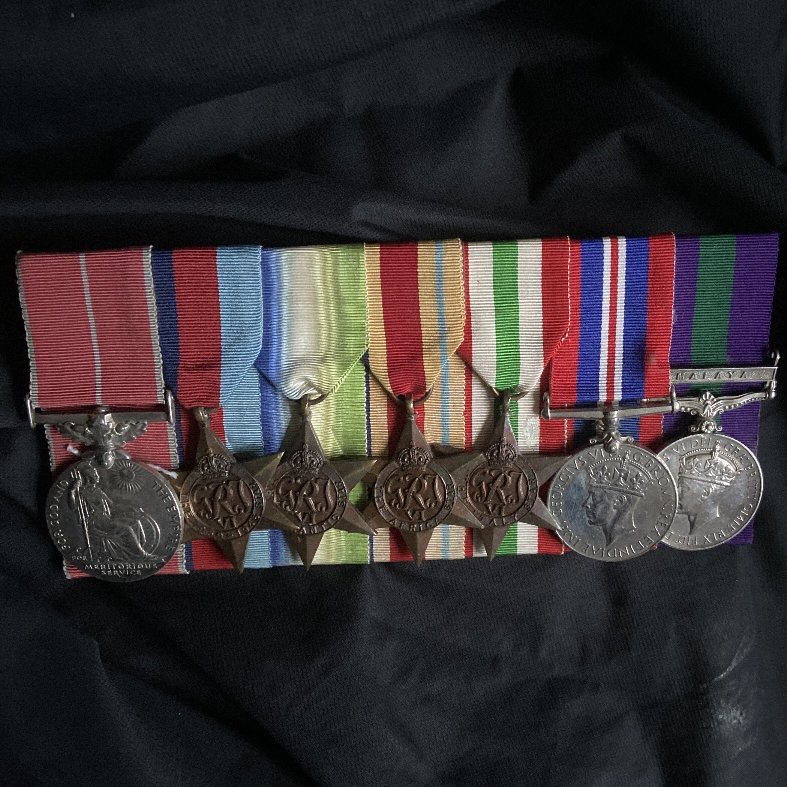 British Empire group of 7 to 4063697 Acting Corporal Robert Macfarlane Macleod. Served WW2 in the Royal Navy, then later in the Far East. He was presented his medal on 1st January 1955 by the commanding officer of 90 Group, RAF