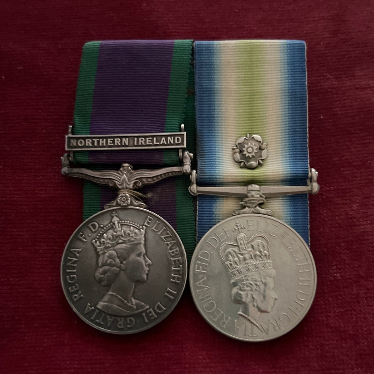 South Atlantic Medal with rosette/ General Service Medal, Northern Ireland bar, to Mark Shurben-Brown, Second Battalion, Parachute Regiment (2 PARA), he saw action at Goose Green and Bluff Cove, and was one of the first soldiers to arrive in Port Stanley at the end of the conflict, includes full history and some photos