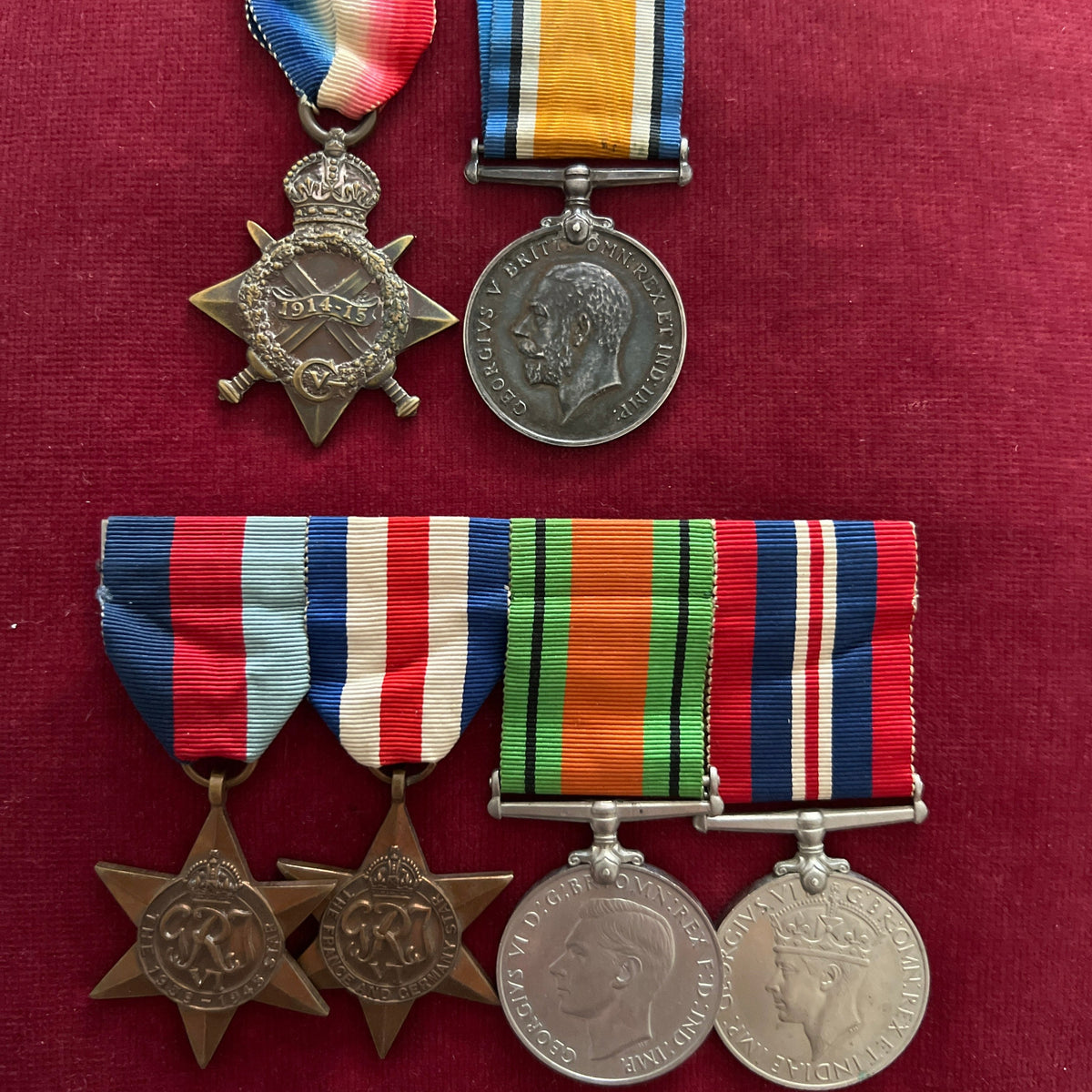 Father & son medals. Father: 1091 Corporal Herbert Pickering,16 Middlesex Regt., missing presumed killed 1st day of Somme, 1st July 1916, commemorated Thispval Memorial. Son: Lieutenant Major A. E. J. Pickering, T.D., named small letters, includes history