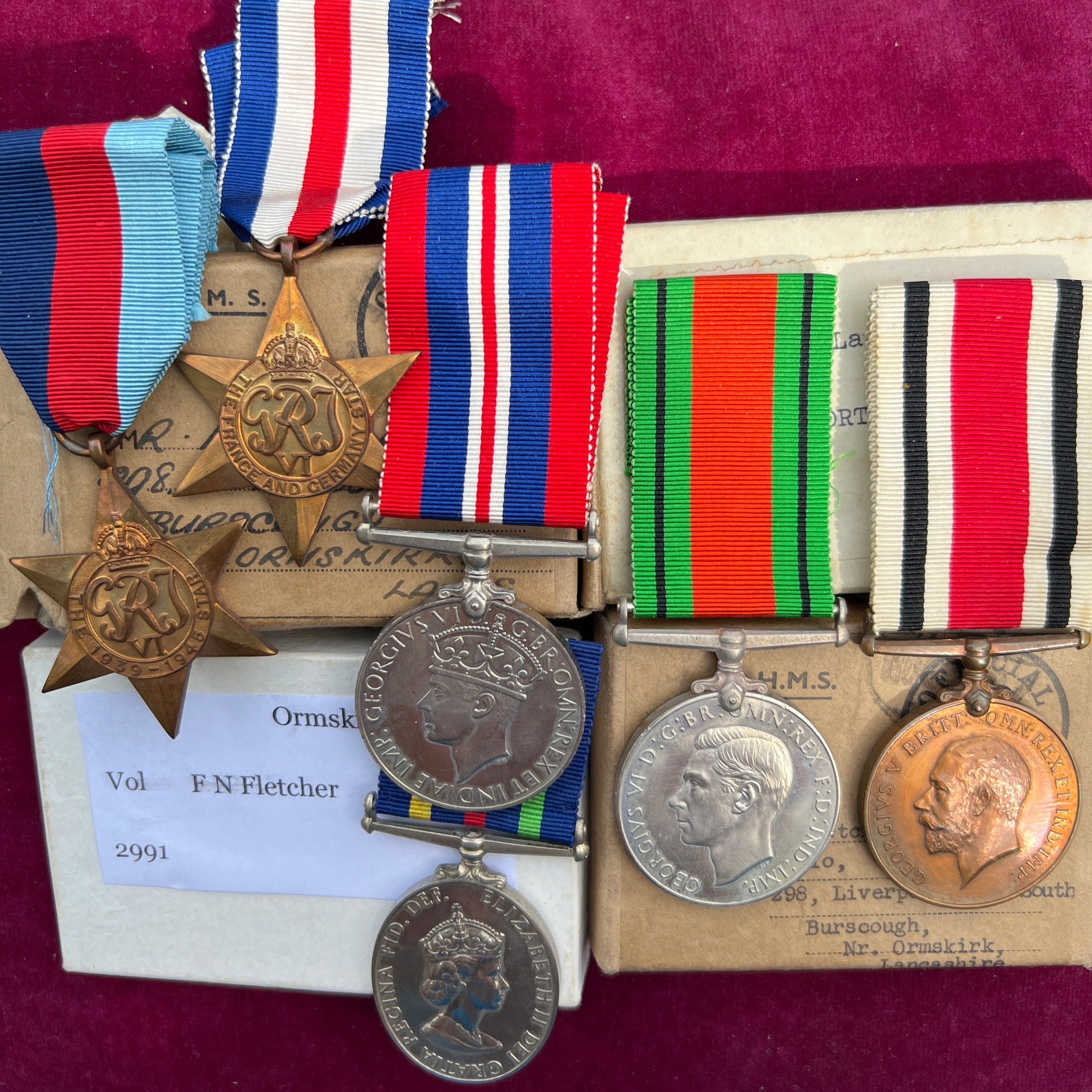 Fletcher family, father & son medals, 2 groups, father served in the Special Constabulary, son served WW2 in the Royal Signals, later in the Civil Defence