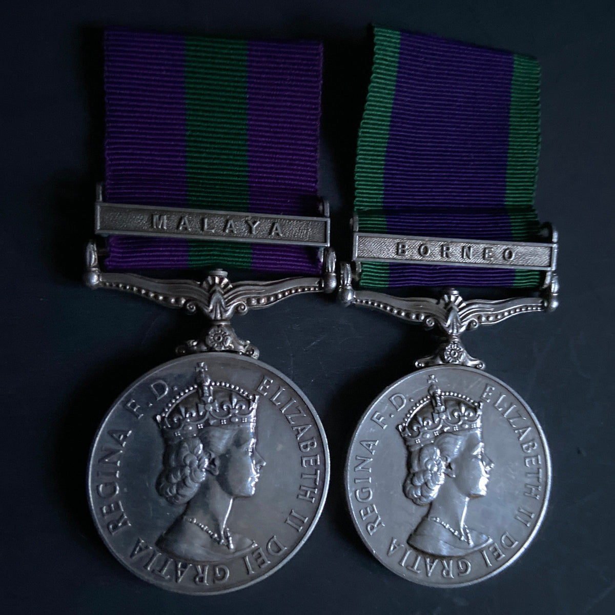 General Service Medal, Malaya clasp/ General Service Medal, Borneo clasp pair, to 23232184 Sergeant R. Bowes, Royal Signals