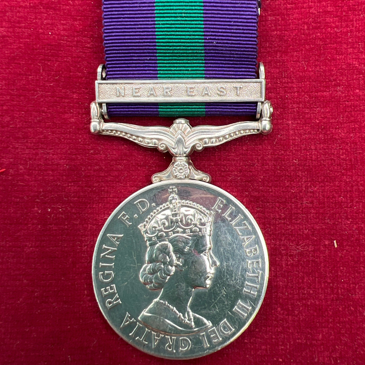 General Service Medal, Near East bar, to 4110472 Senior Aircraftman R. C. James, R.A.F.