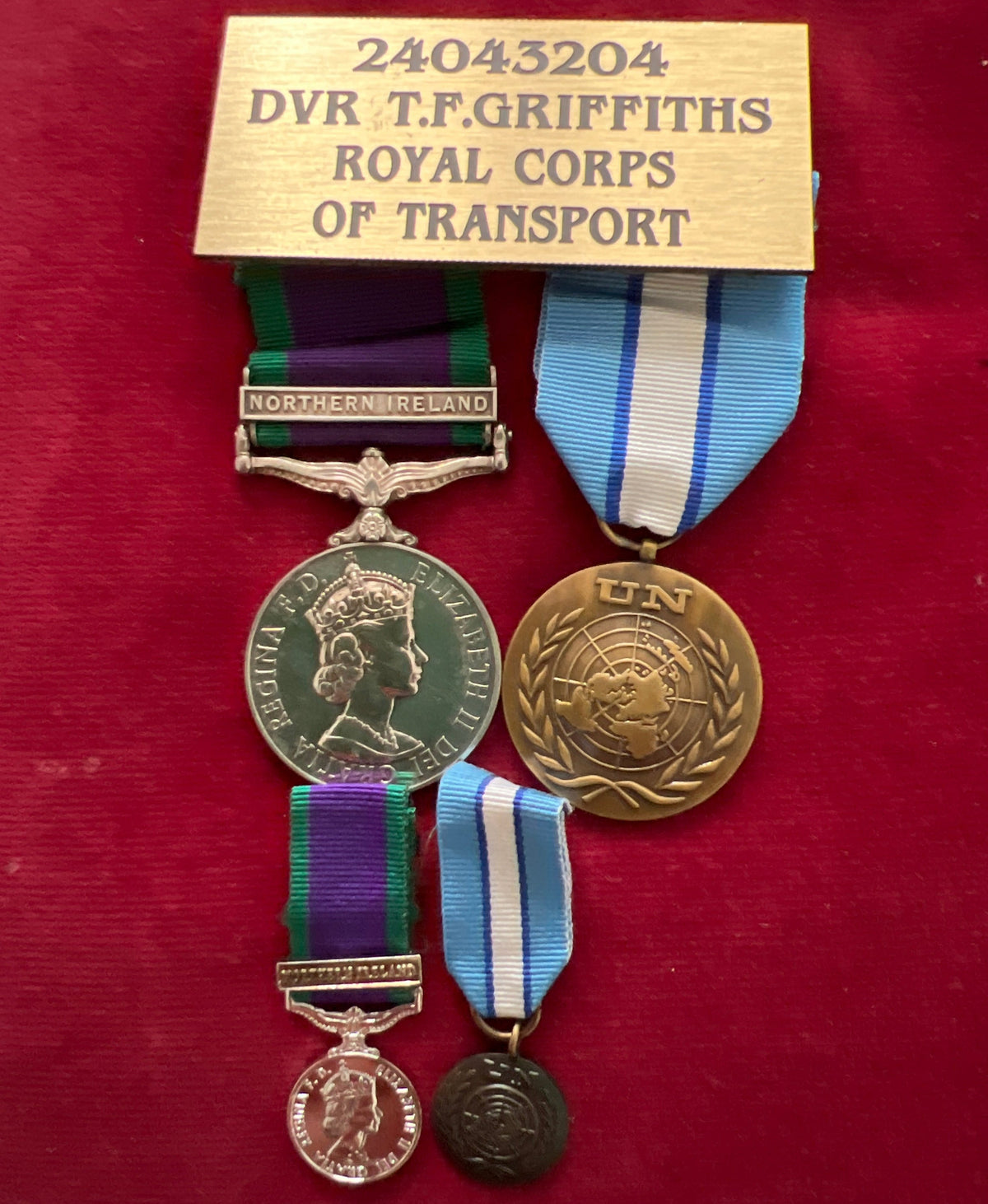 General Service Medal, Northern Ireland clasp/ United Nations Medal pair, to 24043204 Driver T. F. Griffith, Royal Corps of Transport, with miniatures