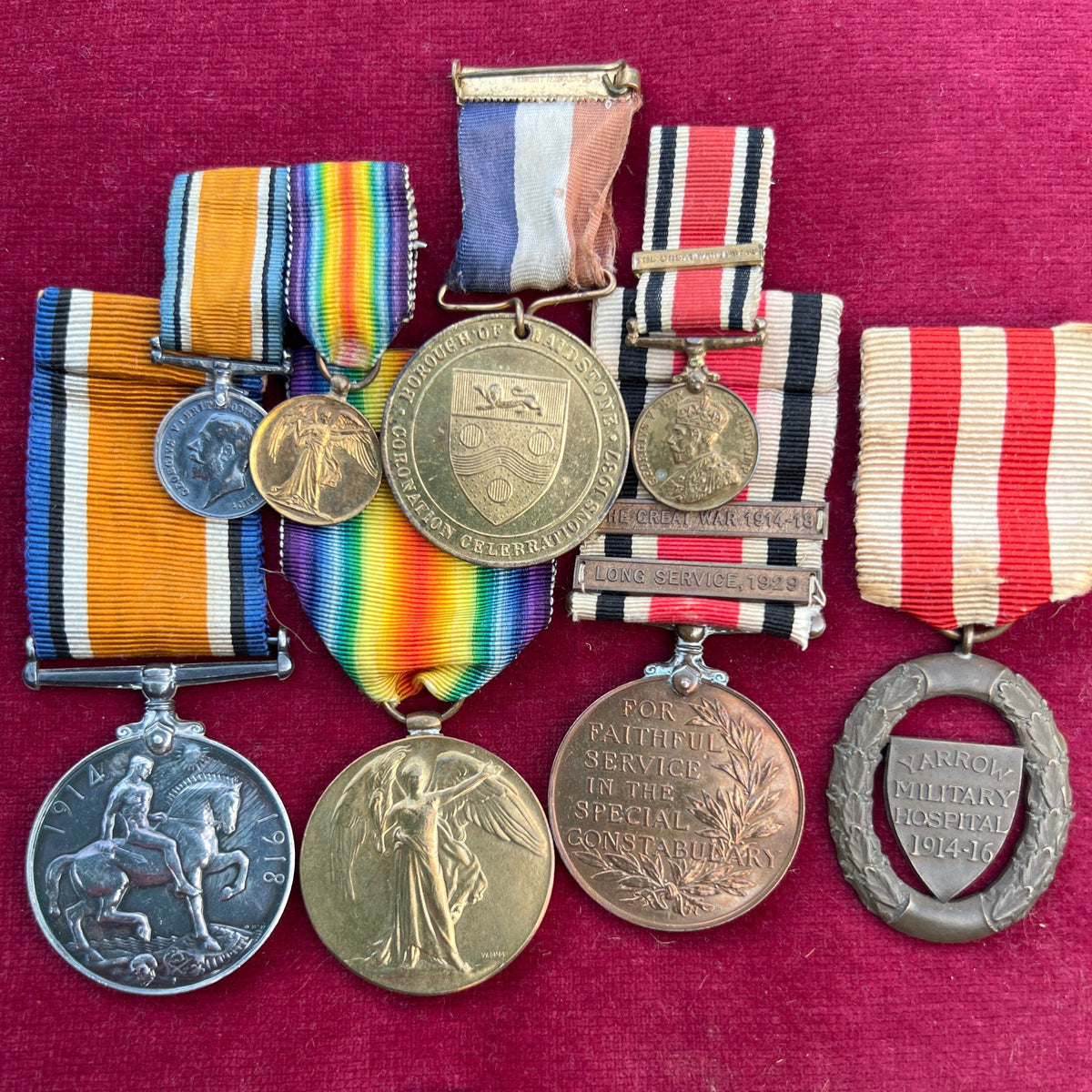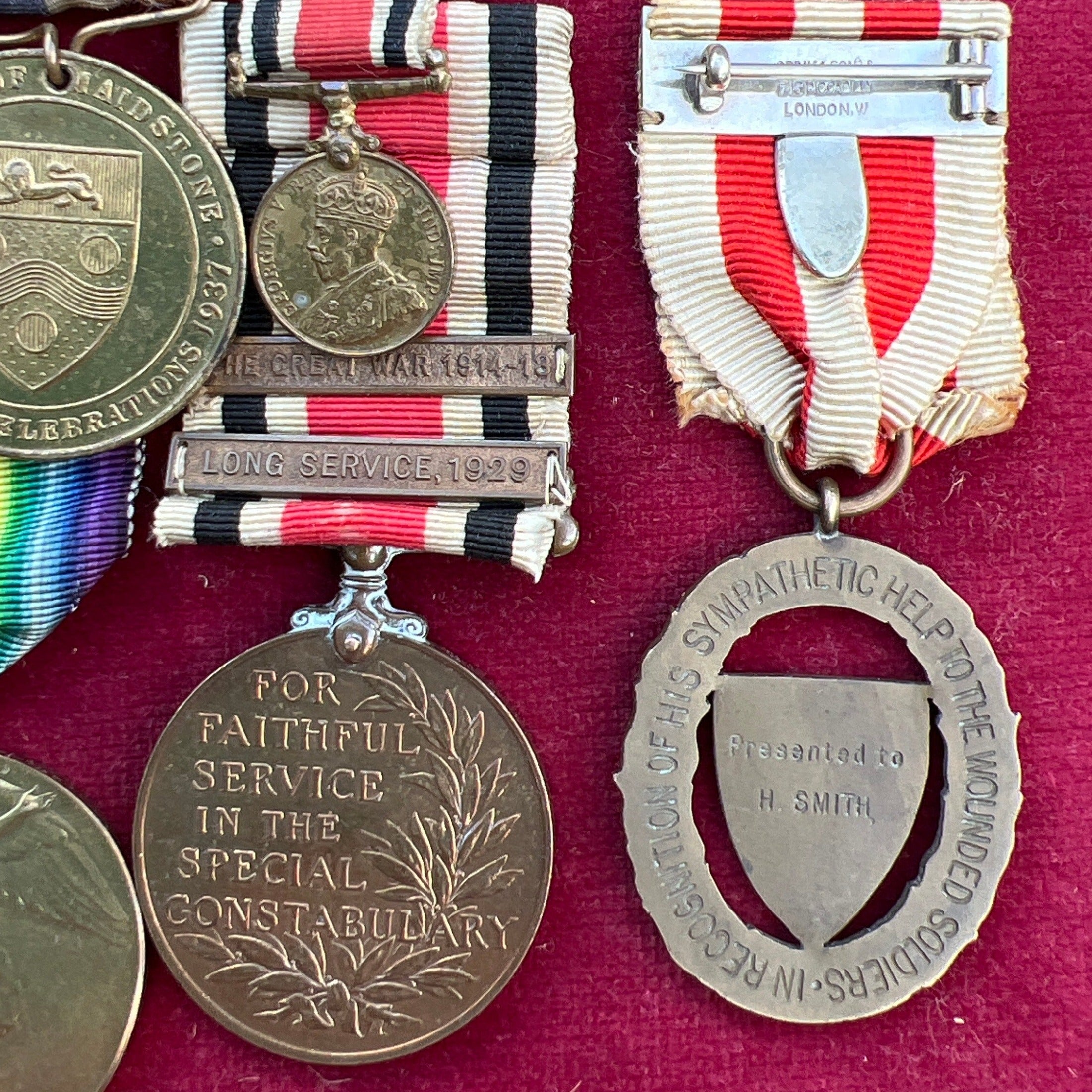 Group of 4 to 254001 Gunner Hugh Smith, Royal Artillery, served at the Yarrow Hospital, Kent, medal named to H. Smith, in recognition of his sympathetic help to wounded soldiers, scarce medal