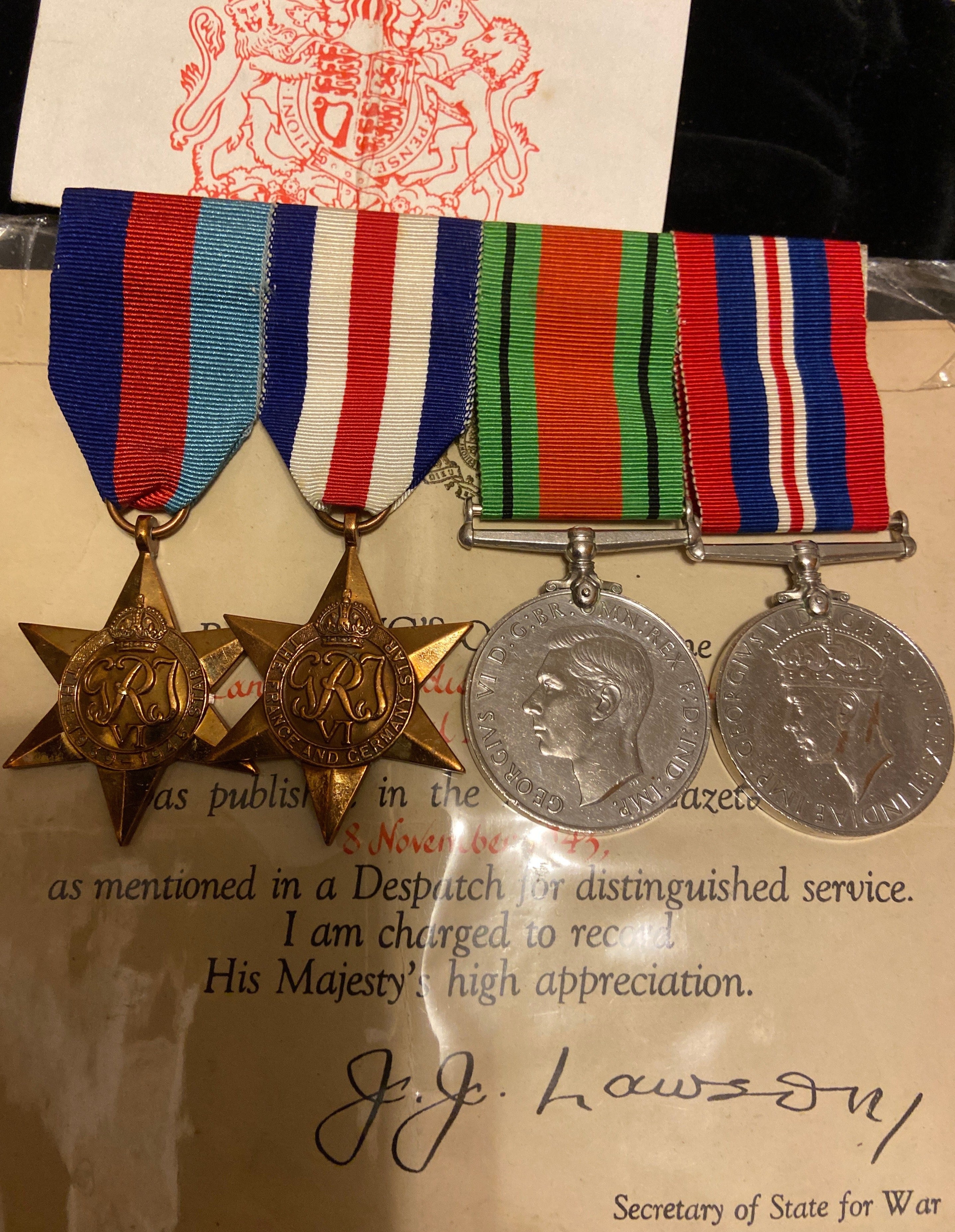 Group of 4 to John James Woodhouse, 151 Field Artillery, with MiD certificate, London Gazette 8th November 1945, joined the artillery 16th October 1939, with some history
