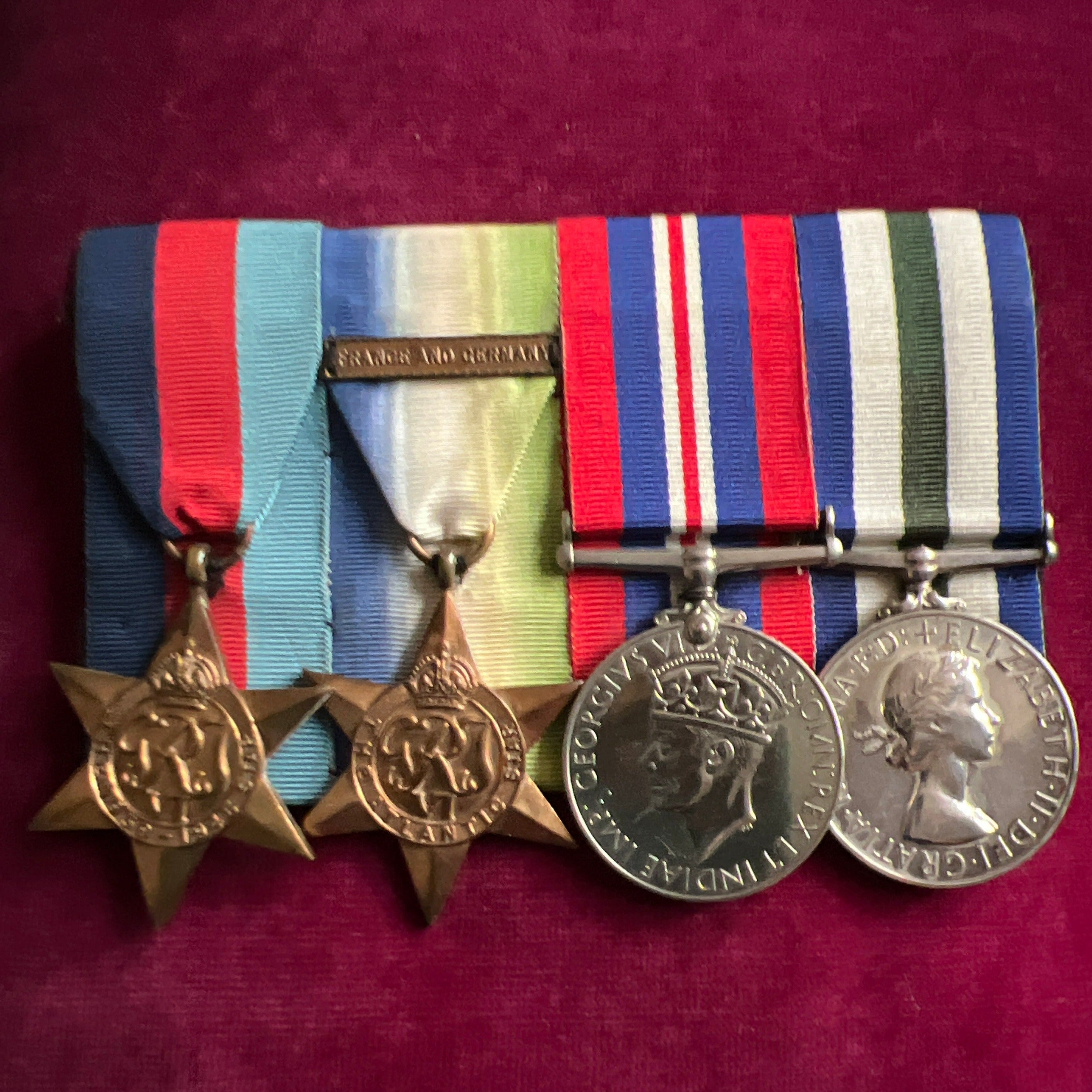 Group of 4 to X996950 R. V. Weston, L.E.M. R.N.R., formerly D/M.X.508737 Wireman H.M. Landing Craft 2338, he was seriously wounded on D-Day when the landing craft was hit on its ramp at Juno beach, with history