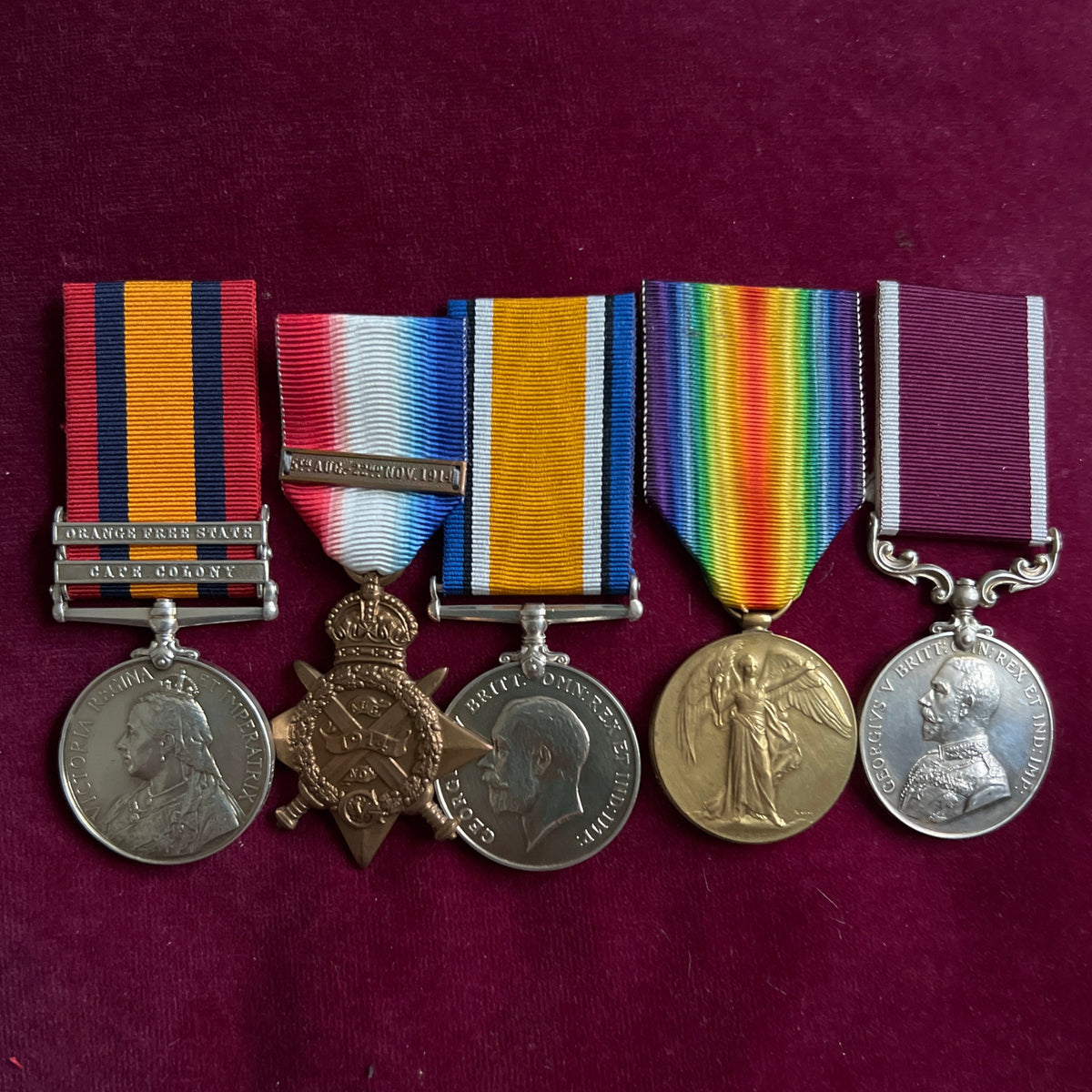 Group of 5 to 4856 Drummer/ Pte. William White, 2nd Royal Warwickshire Regiment, gunshot wound 24/10/1914, served through the war, includes service papers