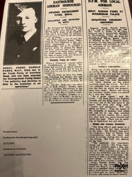 Group of 6 to Sergeant Frank Harold Parks, Navigator and Bomb Aimer, RAF, served with 58 Squadron, completed 16 operations over Germany quite early in the war from November 1940 - February 1941, his Distinguished Flying Medal was awarded London Gazette 11th February 1941, he received his medal from the King at Buckingham Palace (see news cuttings), this group comes with full history of operations, he went on to serve in the Royal Air Force after the war where he received the R.A.F. Long Service & Good Conduct Medal with bar