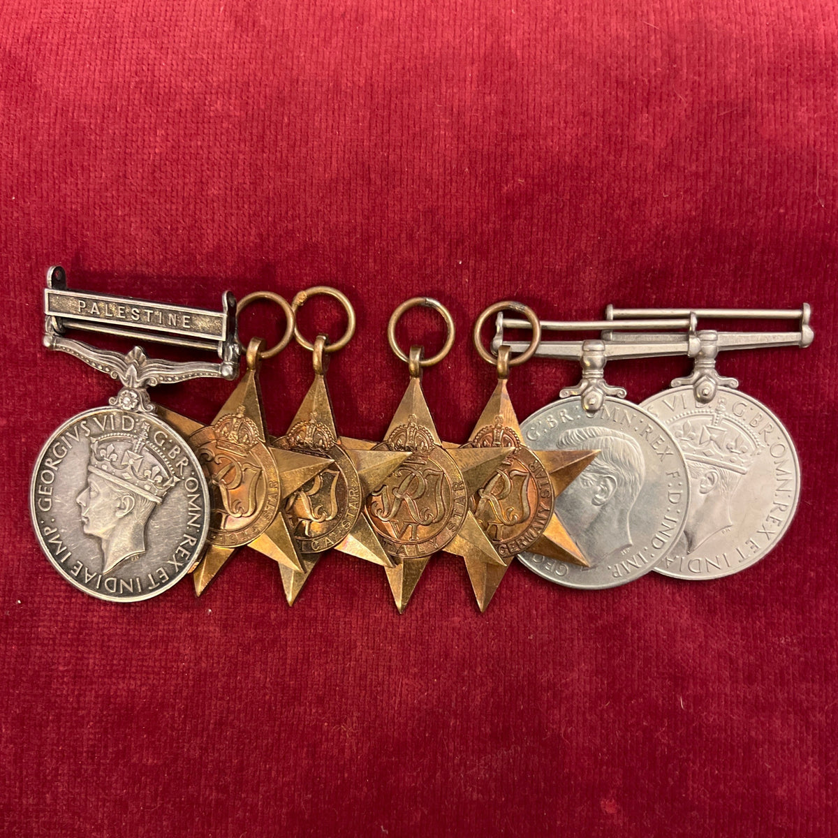 Group of 7 to 4385393 Private E. Strutt, Green Howards, pre-war Palestine GSM, 1939-45 Star, Africa Star, Italy Star, France & Germany Star, Defence Medal & War Medal 1939-45
