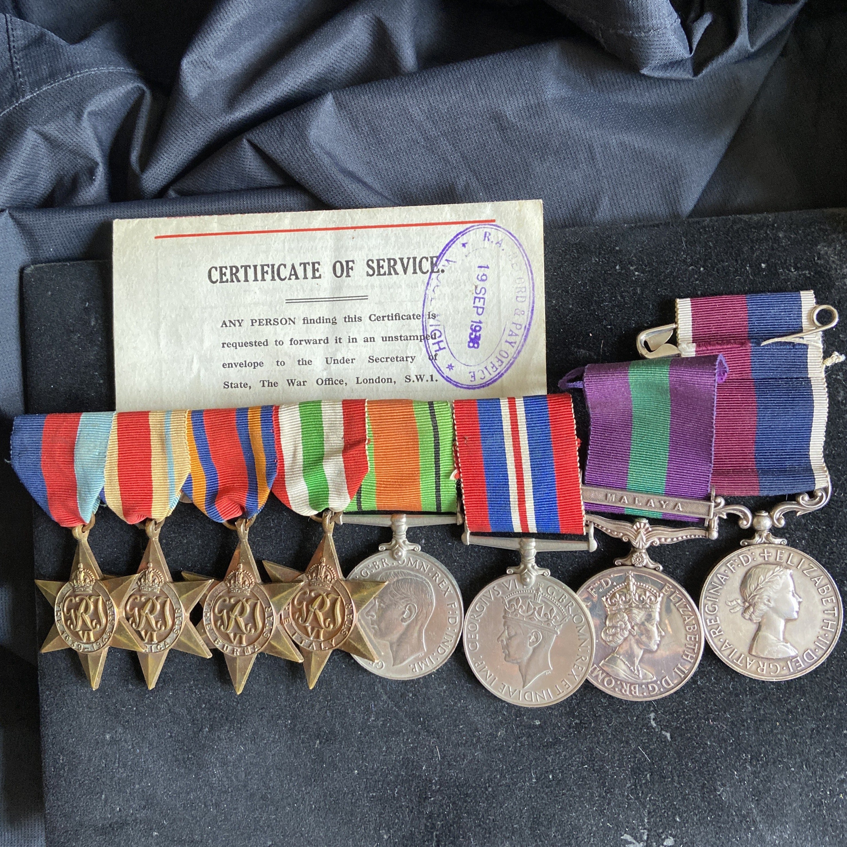 Group of 8 to Gunner William Brown. Joined as a Territorial in the Royal Artillery 26/1/1937, later joined the RAF 25/8/1938, service in North Africa, Burma, Italy, & after the war in Malaya