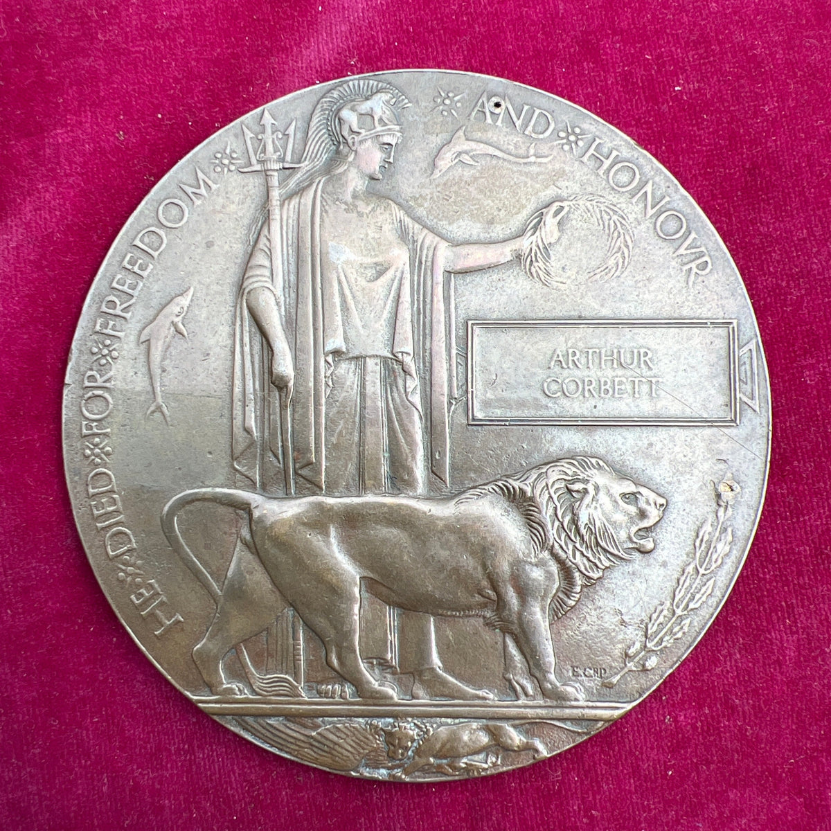Memorial Plaque to 553232 Pte. Arthur Corbett, 15/ London Regiment, killed in action 5th March 1918, Kantara War Cemetery, Egypt