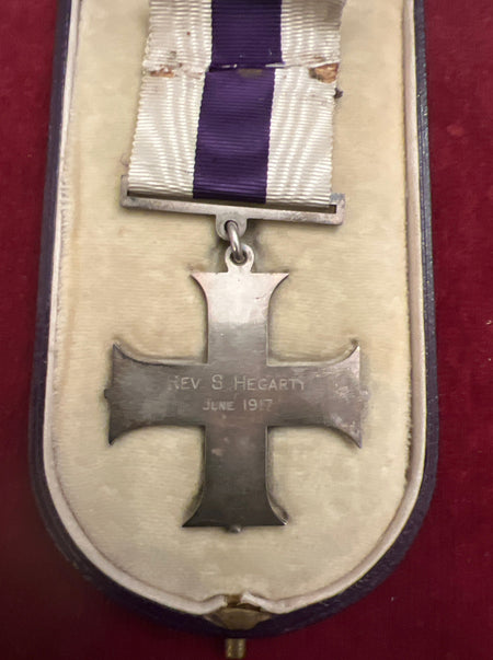 Military Cross awarded to Chaplain Captain of the Forces Rev Simon Hegarty, an Australian, he served for two years and was wounded, he was in charge of St Peters Malvern New South Wales, LG: 4/6/1917, includes a large file of research, an interesting item