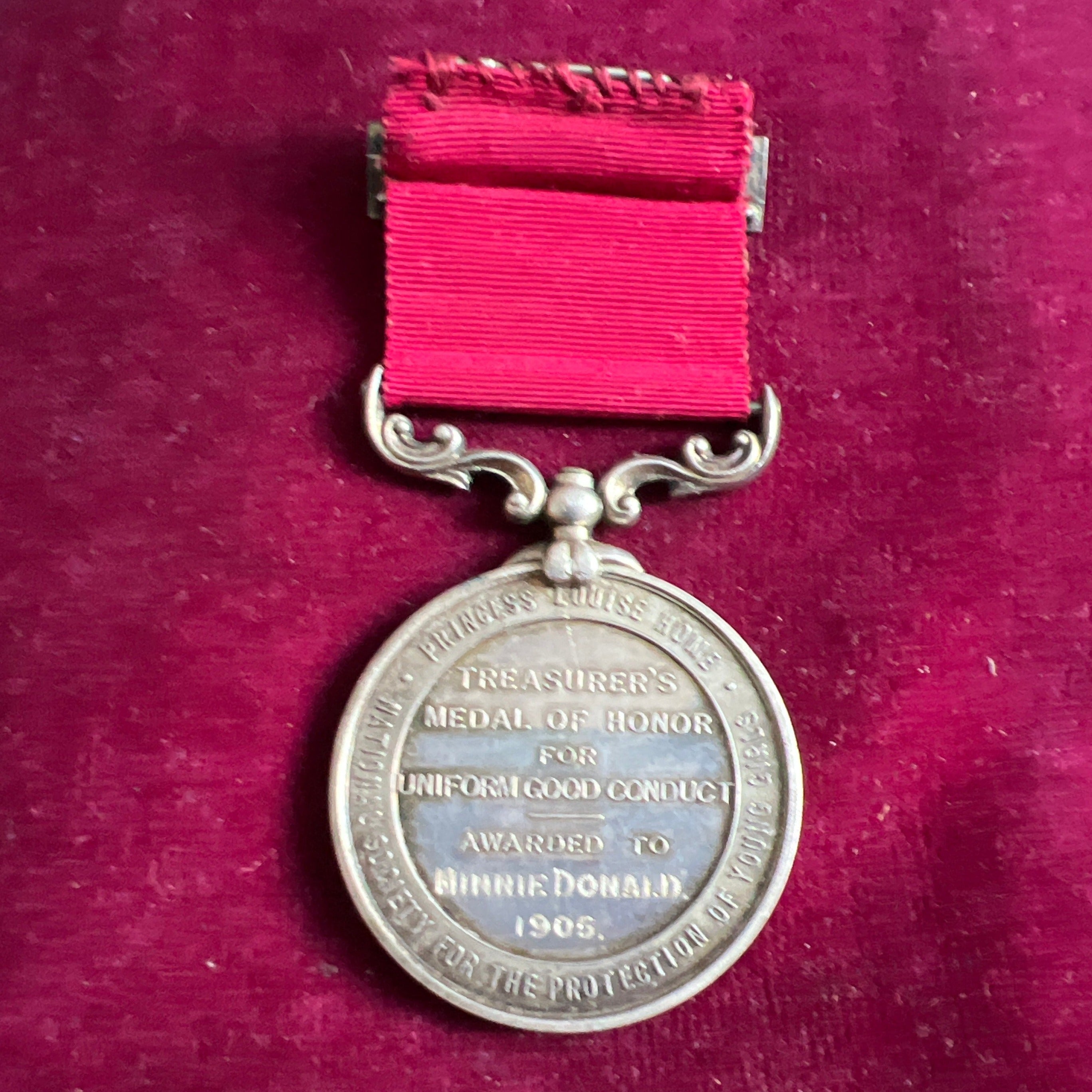 Princess Louise Home, National Society for the Protection of Young Girls, Treasurer's Medal of Honour, for Uniform Good Conduct, awarded to Minnie Donald, 1905