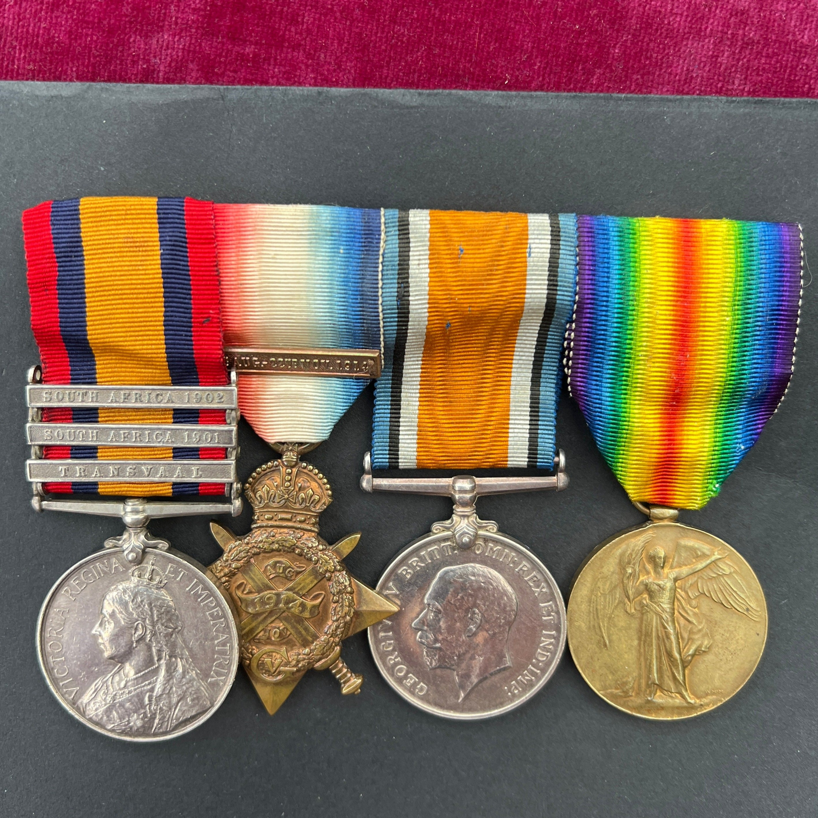 Queen's South Africa group of 4 to John Hardy, 2 Battalion, West Yorkshire Regiment, served Saint Nazaire, France, 10/9/1914, discharged May 1915, see history, good war diary