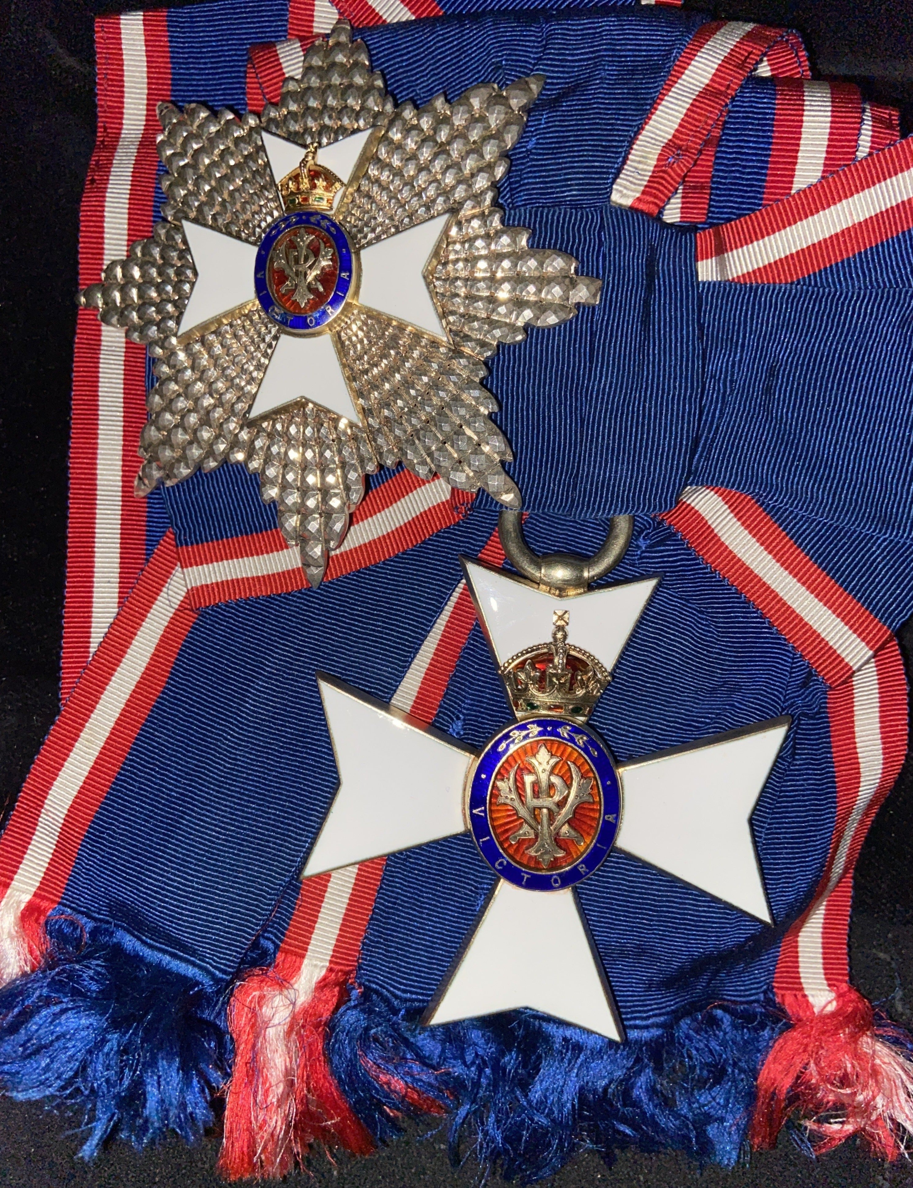 Star and riband of a Knight Grand Cross of the Royal Victorian Order, numbered '404' on the reverse of both items