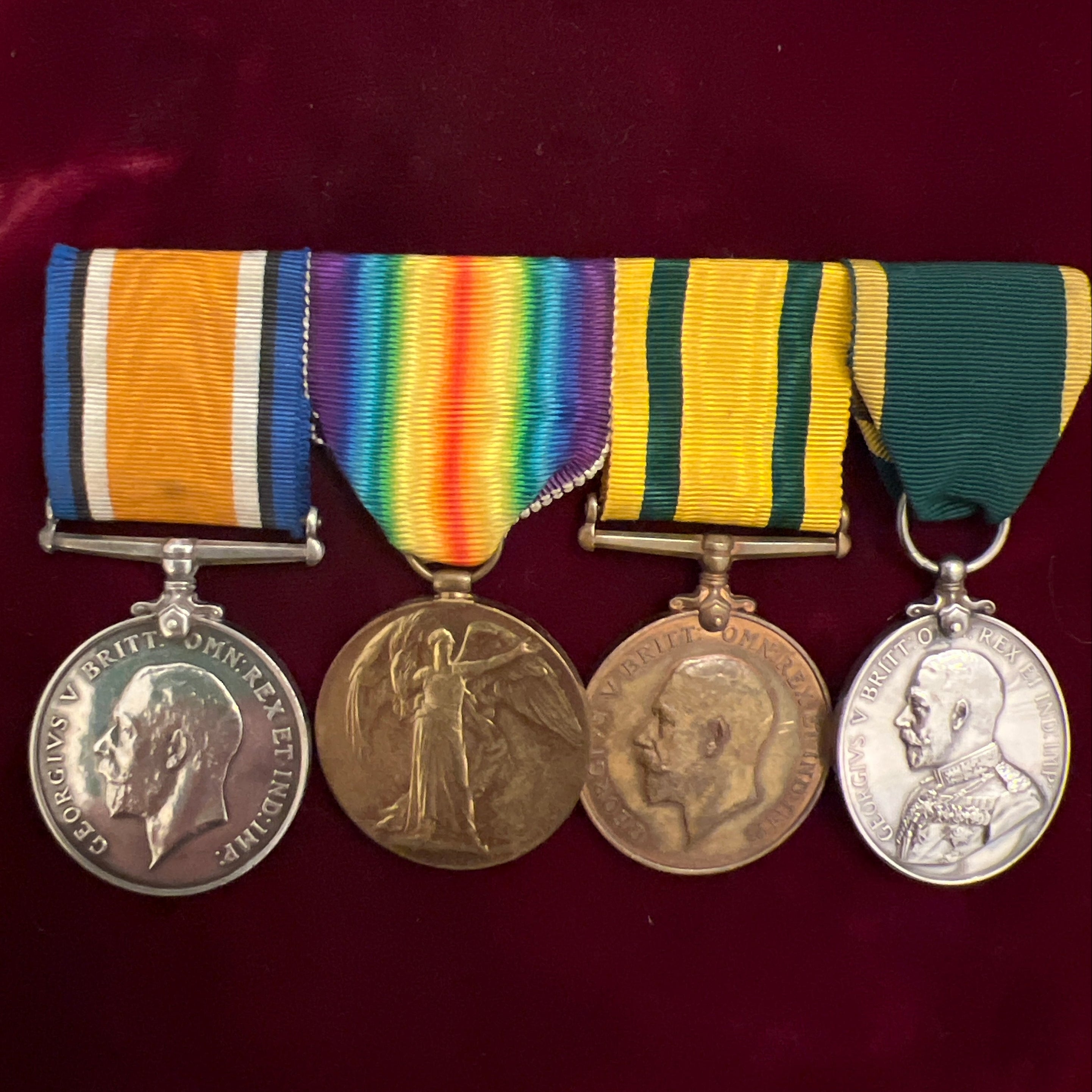 Territorial Force War Medal/ Territorial Force Efficiency Medal group of 4 to 265123 Sergeant A. H. V. Ingram, Kent Cyclist Battalion on all medals