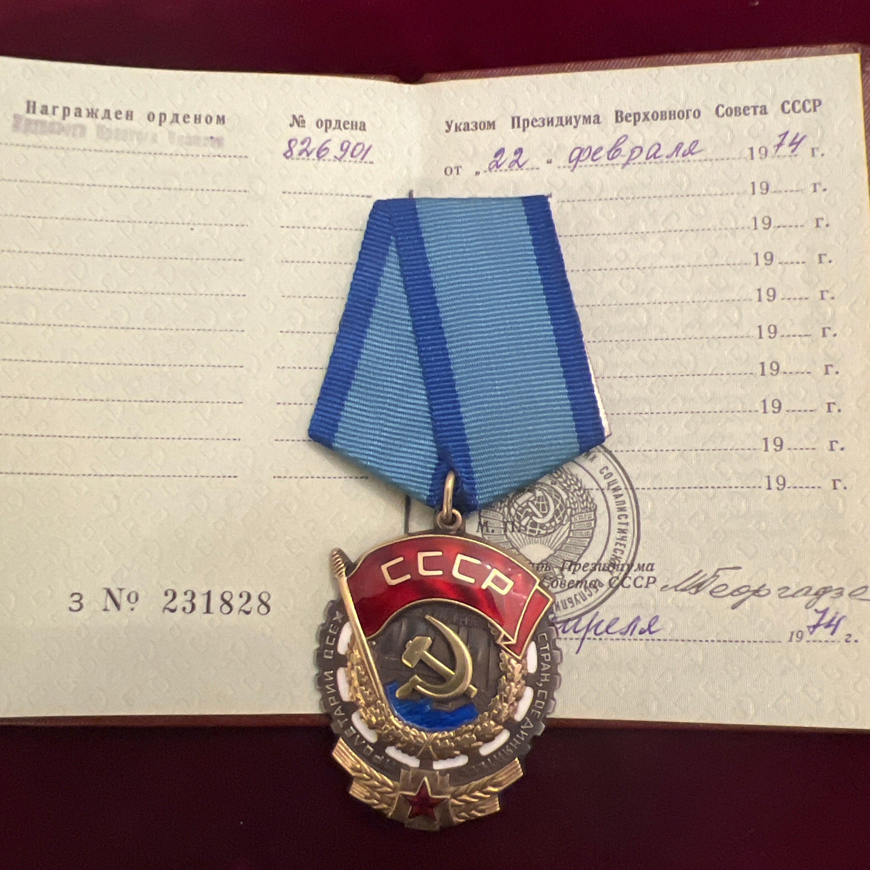 Increase quantity for USSR, Order of the Red Banner, civil, with ID book dated 1974