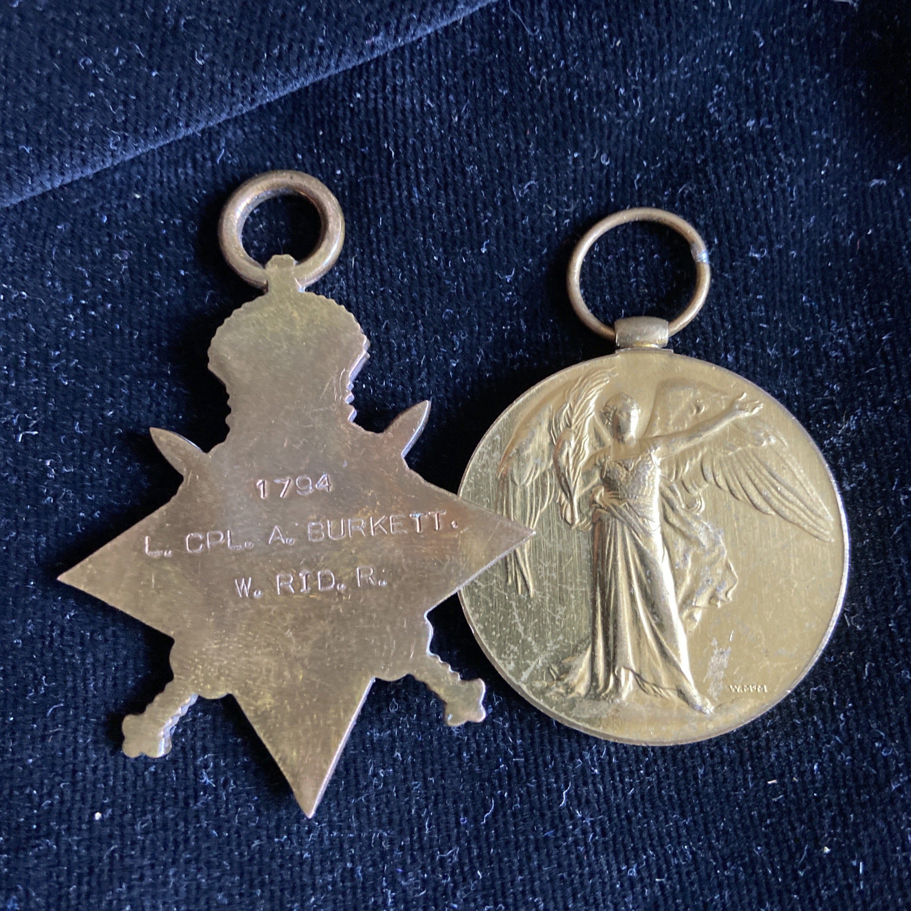 WW1 pair to 1794 L/Cpl. Alfred Burkitt, West Riding Regiment, he then transferred to the RAF; 41527 Air Mechanic