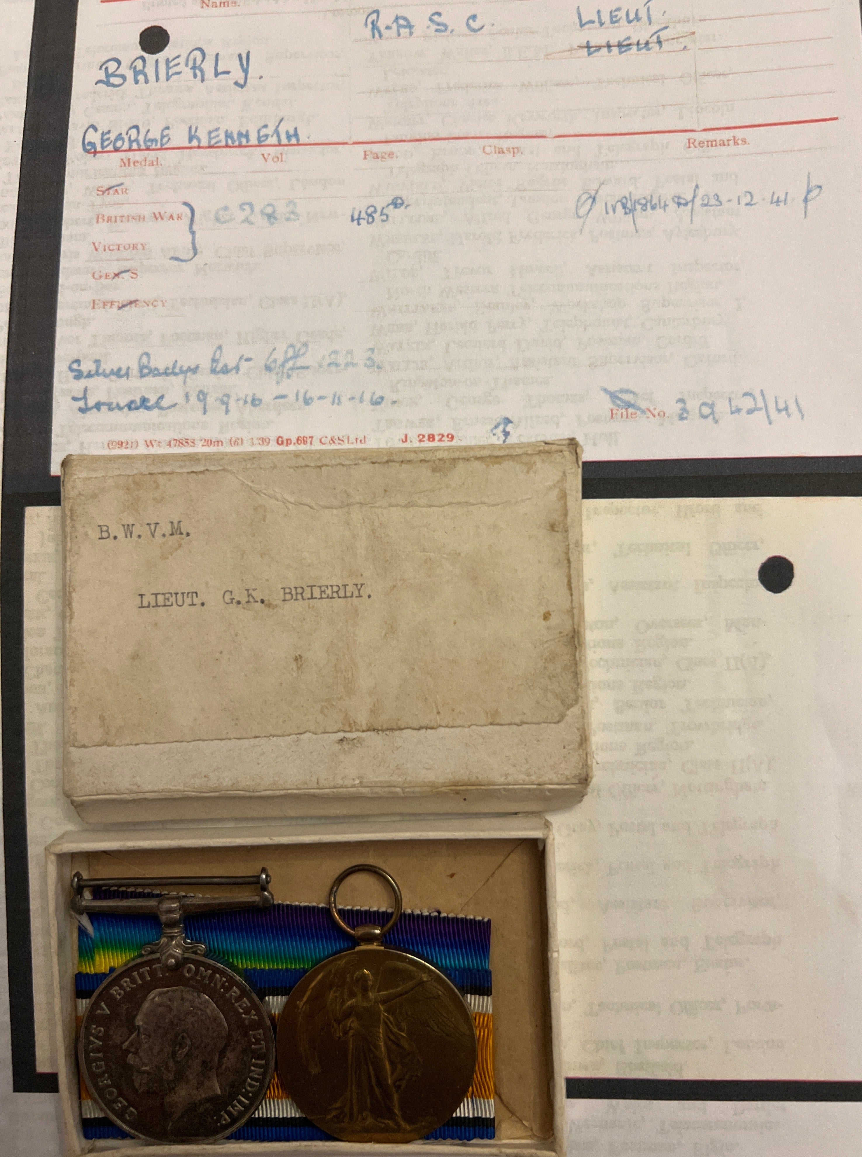 WW1 pair to Lieutenant George Kenneth Brierly, Royal Army Service Corps, France 19/9/1916, includes some history