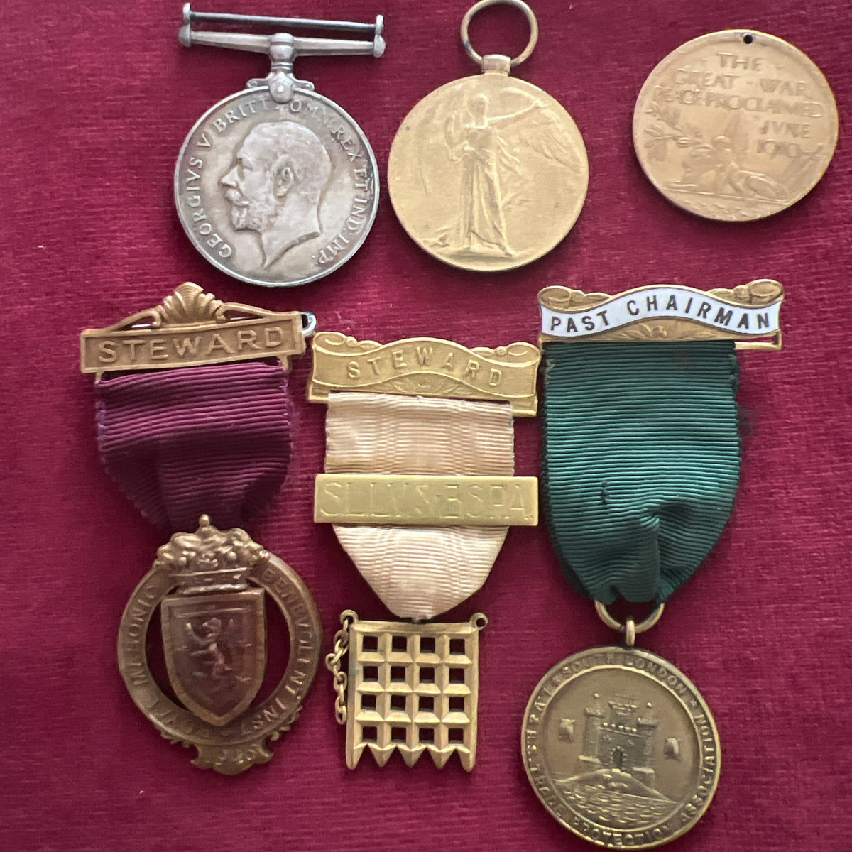 WW1 pair with various Masonic medals to 288213 Pioneer Arthur E. Jennings, Royal Engineers, 64 Division Engineers, with history