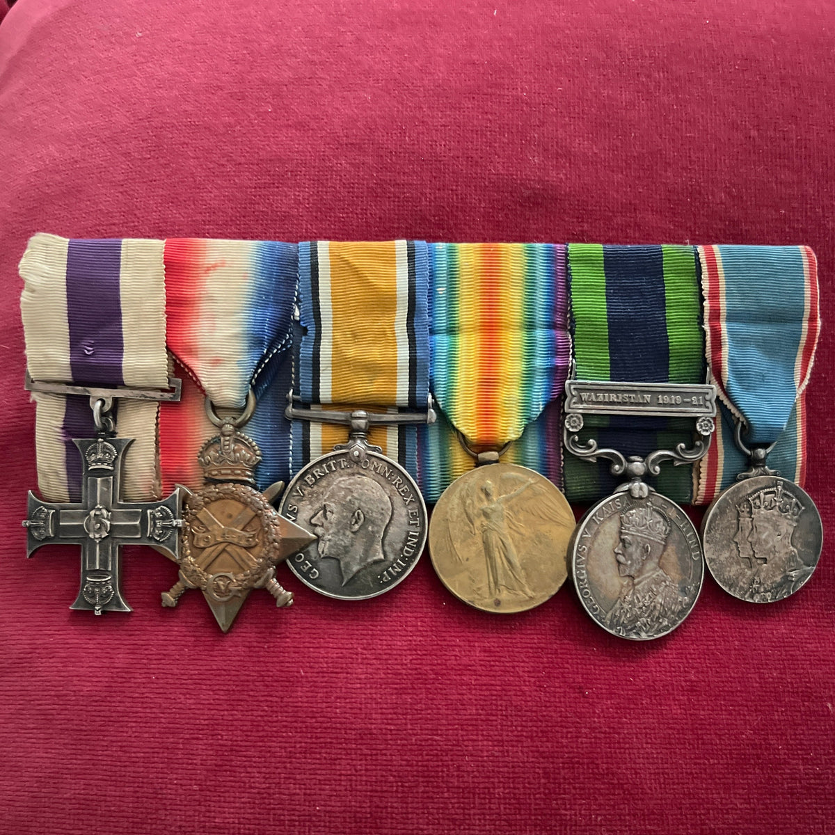 WW1 Military Cross (MC) 1914-15 trio, IGS 1908 with Waziristan 1919-1921 clasp & 1937 Coronation Medal to,