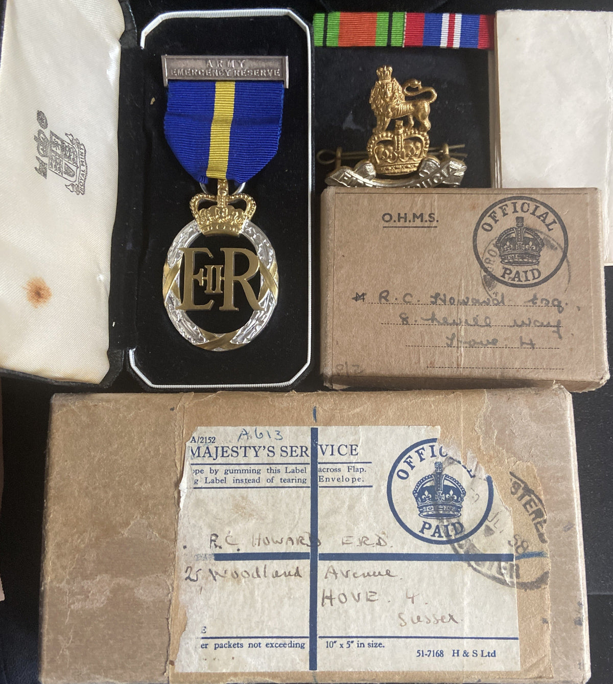 WW2/ post-war group to Major R. C. Howard, Royal Army Pay Corps. Army Emergency Reserve Decoration, London Gazette 8 July 1956, with boxes of issue and notification letter