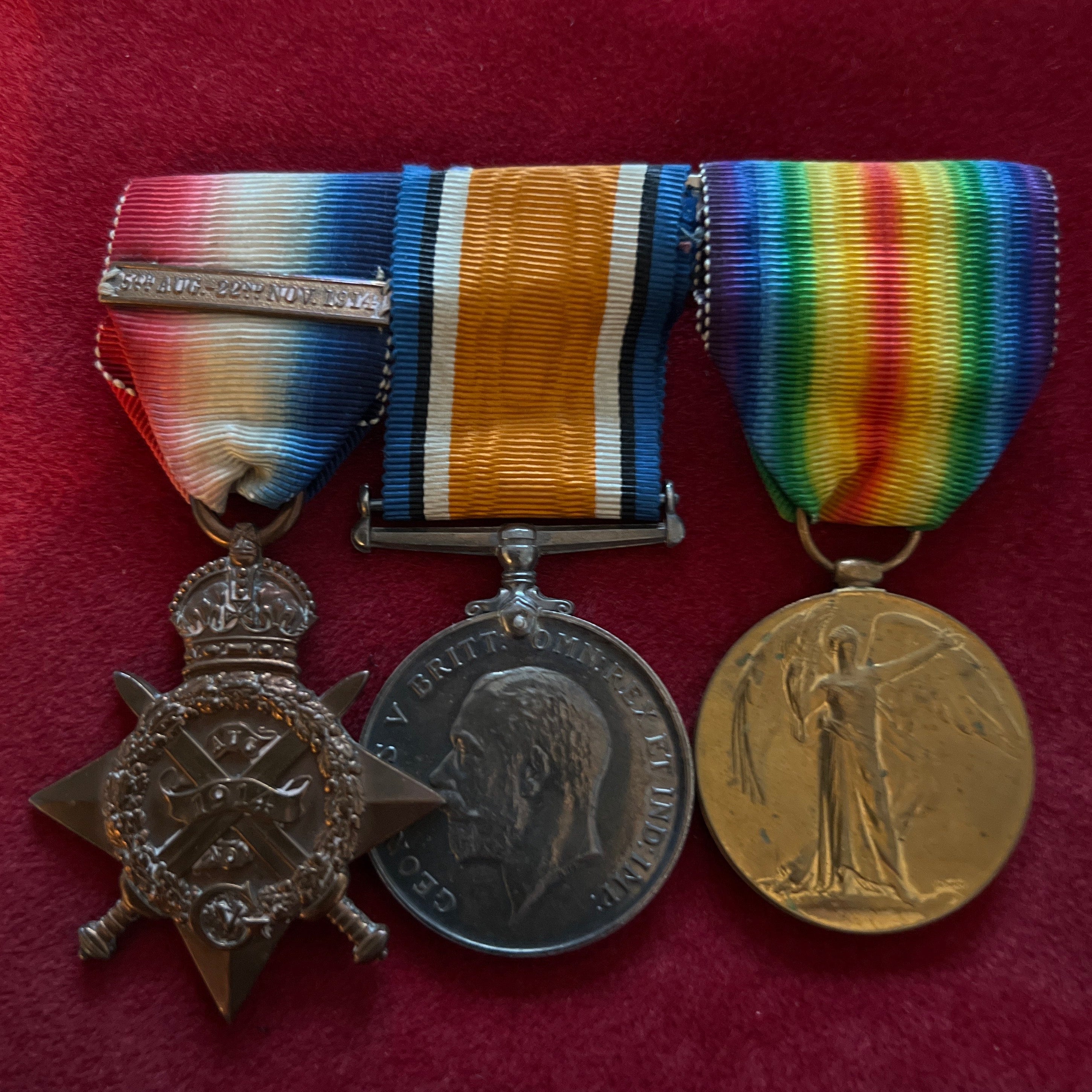 WWI trio to L-11235 Sergeant G. Thomson, 4 Royal Fusiliers, 1914 Star with original '5th AUG.-22nd NOV. 1914' bar
